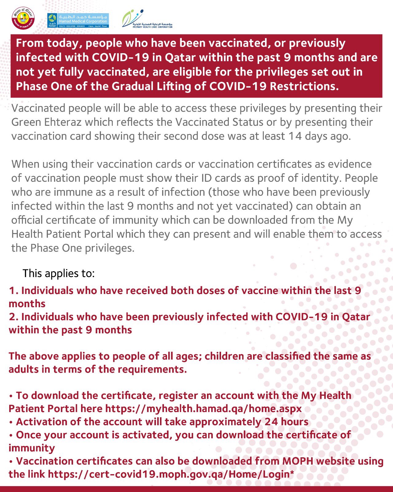 وزارة الصحة العامة On Twitter From Today People Who Have Been Vaccinated Or Previously Infected With Covid 19 In Qatar Within The Past 9 Months And Are Not Yet Fully Vaccinated Are Eligible